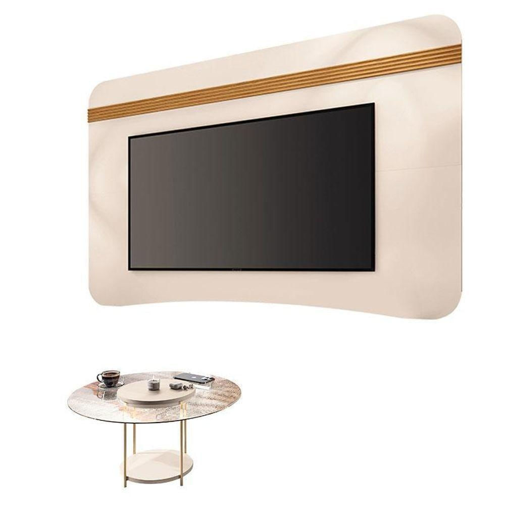 Painel Suspenso Armony Off White Cinamomo Com Mesa De Centro Sky Com Tampo De Vidro Off White - Hb Móveis