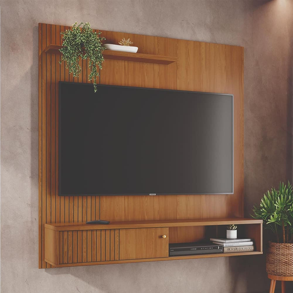 Painel Suspenso para TV Madetec Aurora 160cm Ripado Porta Deslizante Marrom