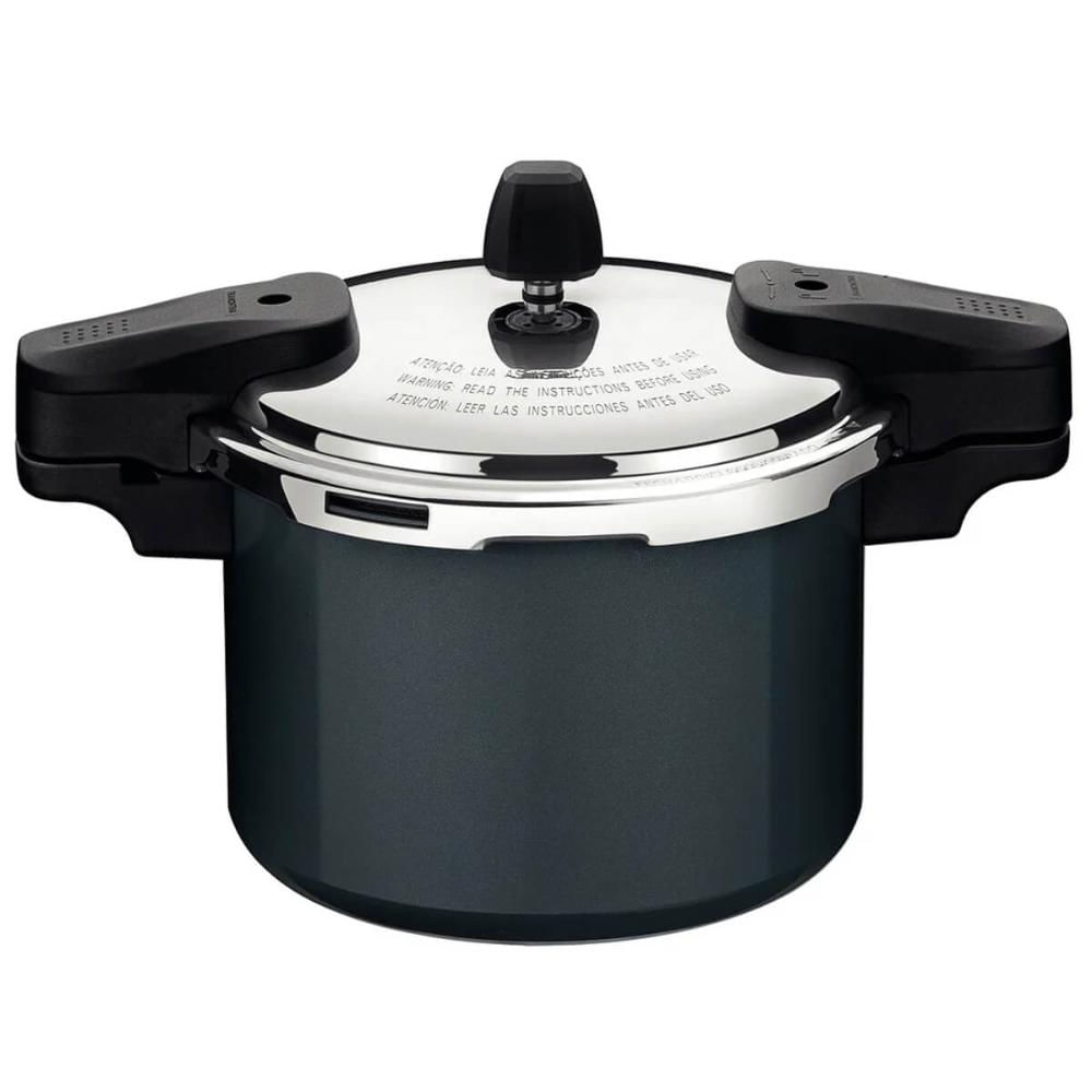 A panela de pressão de 4,5L Tramontina Torino é produzida em alumínio de 4 milímetros de espessura e com revestimento interno e externo cerâmico tornando o cozimento dos alimentos mais rápido e uniforme. Possui alças em baquelite antitérmico e tampa de alumínio com acabamento externo polido e interno satinado composta por travas que oferecem maior segurança durante sua utilização. Para garantir maior versatilidade na cozinha ela ainda pode ser utilizada em fogões a gás, elétricos, vitrocerâmicos e indução.