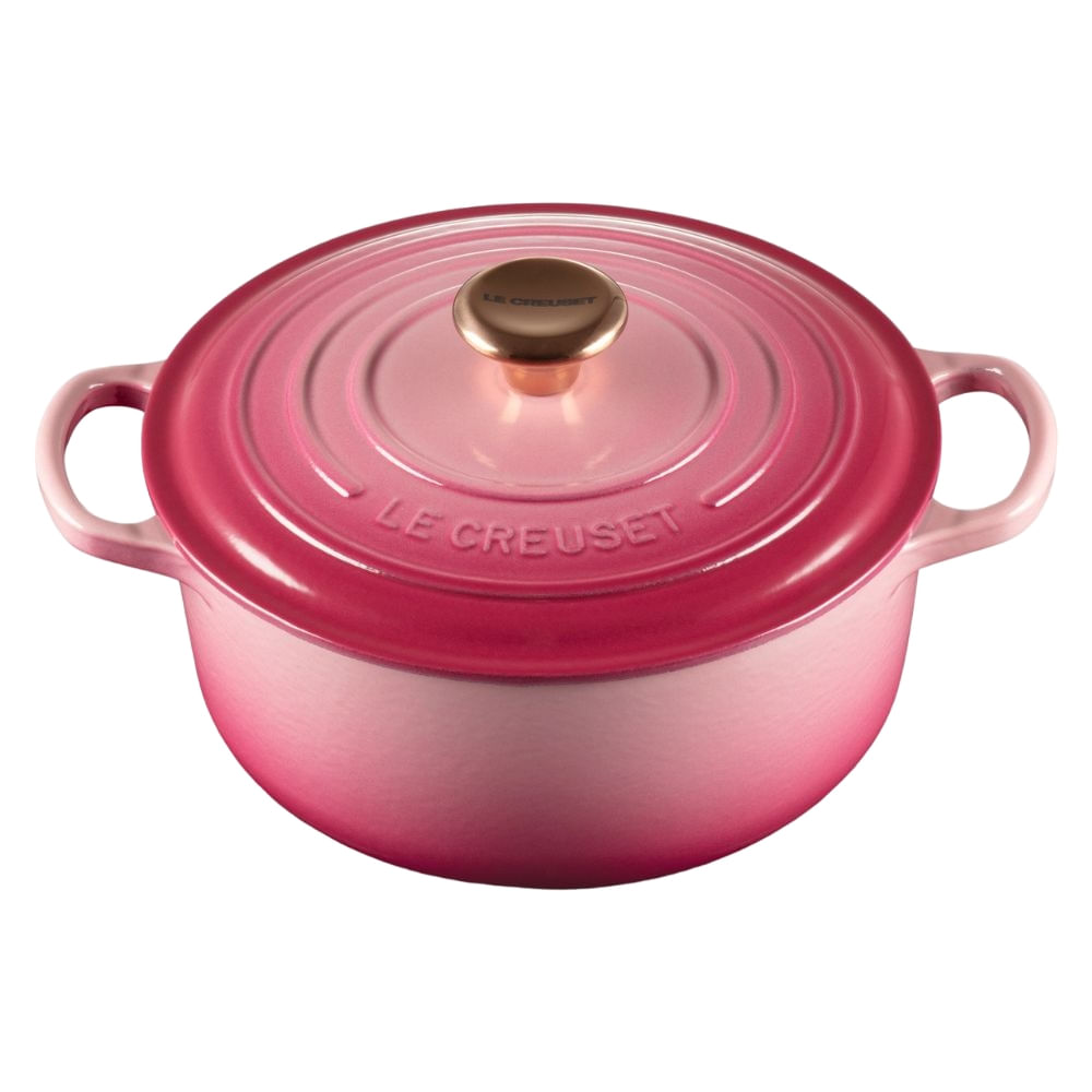 PANELA LE CREUSET REDONDA SIGNATURE PUXADOR DOURADO FERRO ESMALTADO 20CM ROSA BERRY 21177204394445