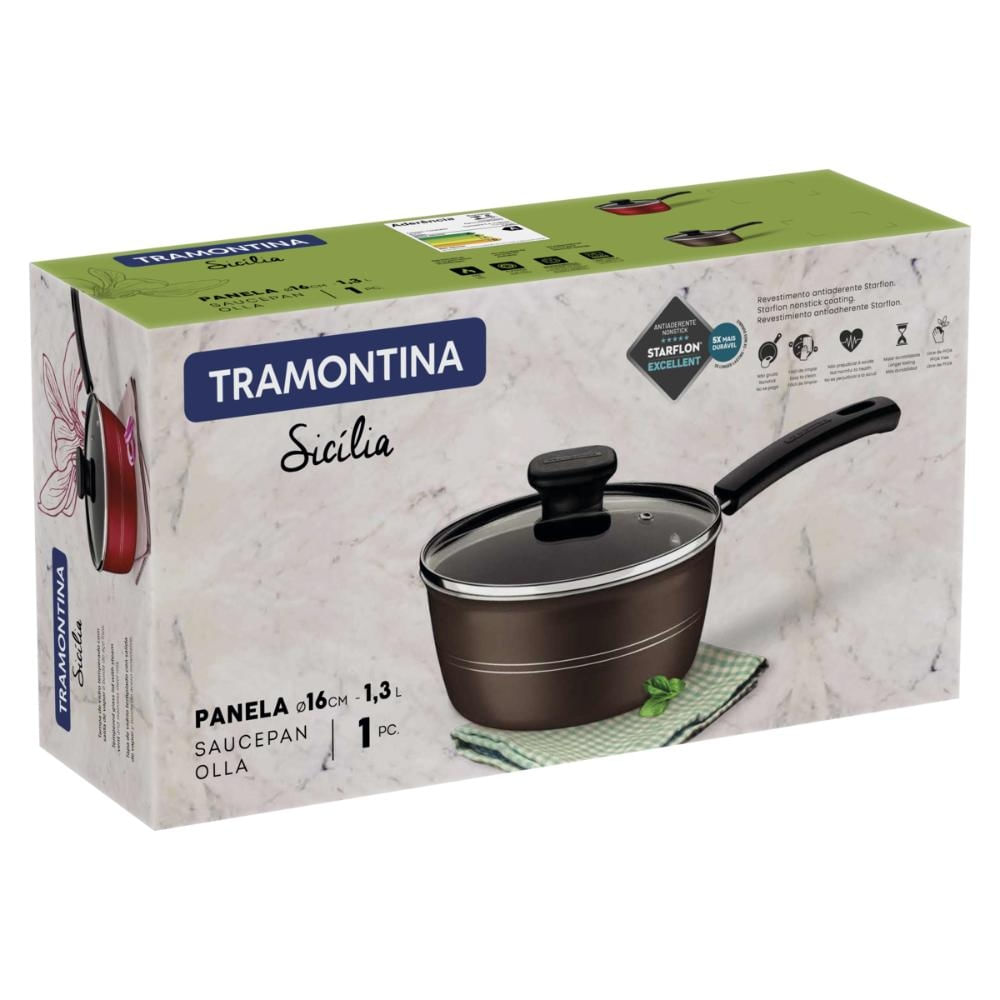 Panela Tramontina Sicilia em Aluminio com Revestimento Interno e Externo em Antiaderente Starflon Excellent Avelã 16 cm