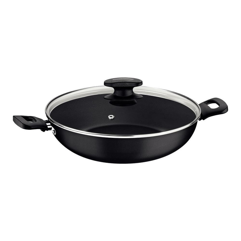 Panela Wok Antiaderente 3,3l Com Tampa Loreto Tramontina Cor:preto Preto
