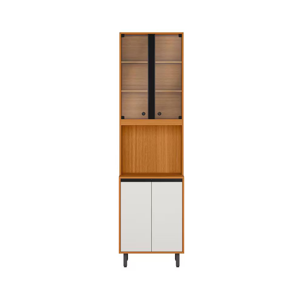 Paneleiro Poliman Ravena 4 Portas com Vidro Iluminação LED Nicho Micro-ondas Pés Reguláveis MDP Freijó Off White Acetinado Freijó/Off White