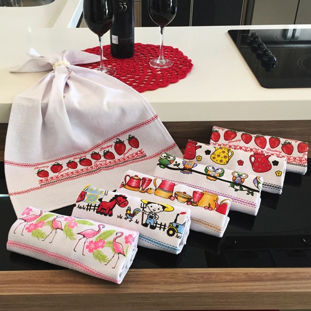 INFORMAÇÕES IMPORTANTES: Item composto apenas por 06 Pano de Copa,os demais itens são meramente decorativos e NÃO fazem parte do conteúdo da embalagem.