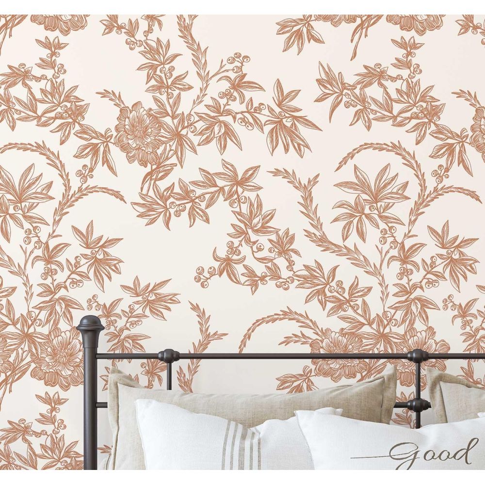Papel Contact Vinílico Removível e Impermeável, Estampa Vintage de Vinha Inspirada na Natureza para Paredes, Armários, Cômoda - S4Sassy 63,5 cm (L) × 152,4 cm (C) / Marrom - Vinil Texturizado