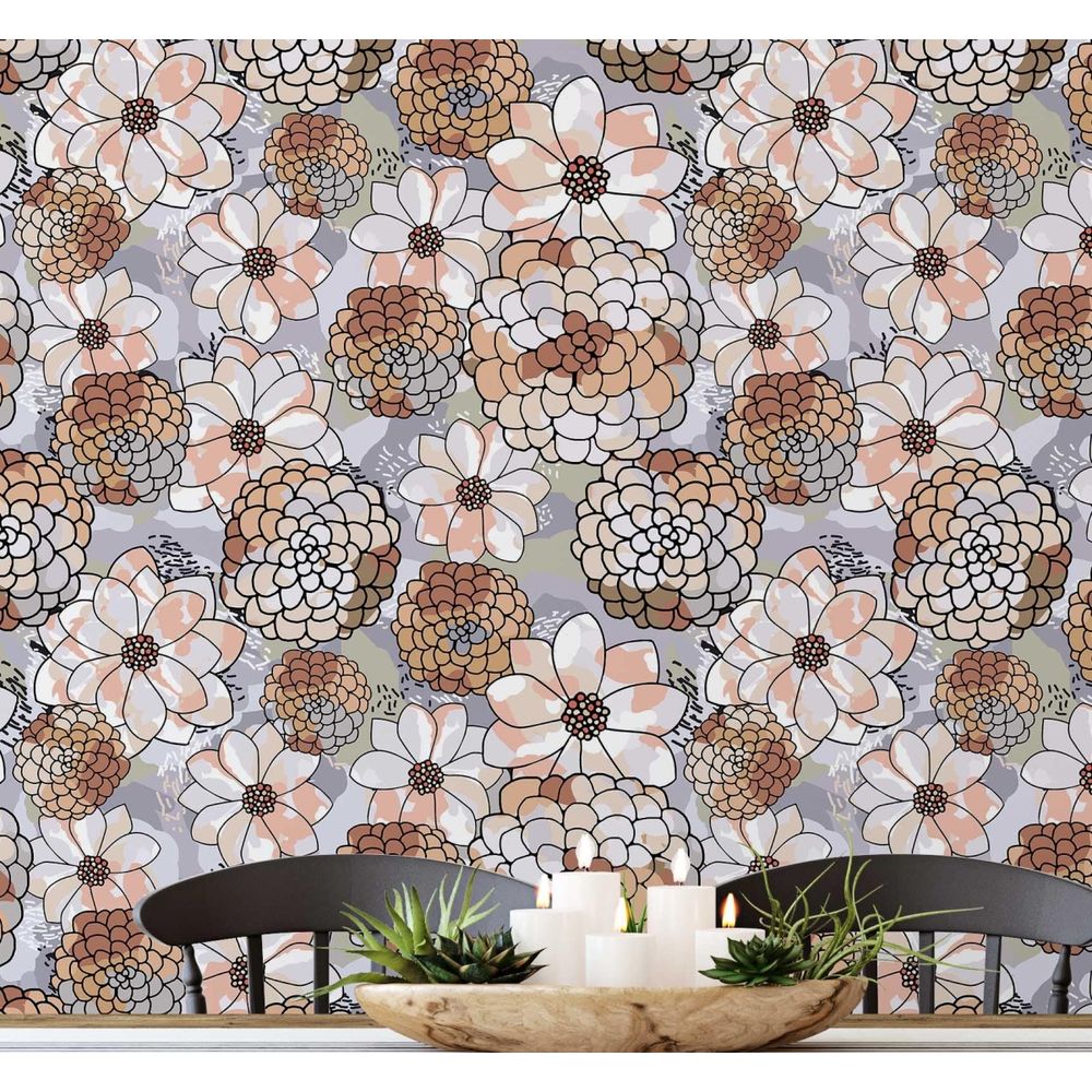 Papel de Parede Autoadesivo Estampa Flor de Pêssego Pastel, Vinílico à Prova d'água, Marrom, Removível, para Quarto e Sala - S4sassy 63,5 cm (L) × 304,8 cm (C) / Marrom - Vinil Texturizado