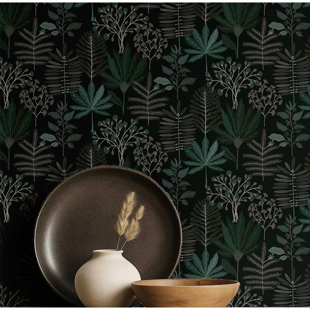 Papel de Parede Autoadesivo Jardim Tropical Tons Pastel, Vinílico Impermeável Preto, Removível para Quarto e Sala de Jantar - S4Sassy 63,5 cm (L) × 304,8 cm (C) / Preto - Vinil Liso
