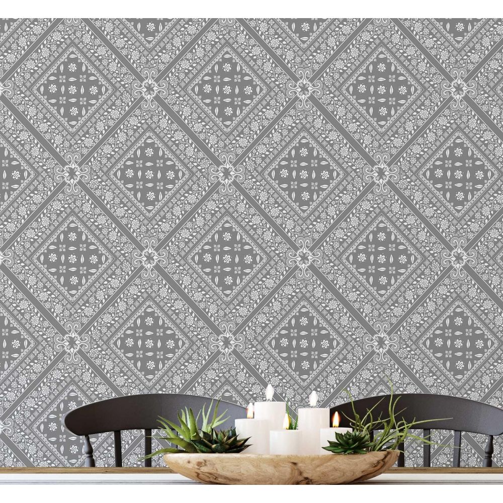 Papel de Parede Bandhani em Azulejos, Autoadesivo, Revestimento Decorativo Estilo Asiático, DIY Fácil para Quarto e Sala - Cinza - S4Sassy 63,5 cm (L) × 152,4 cm (C) / Cinza - Vinil Texturizado