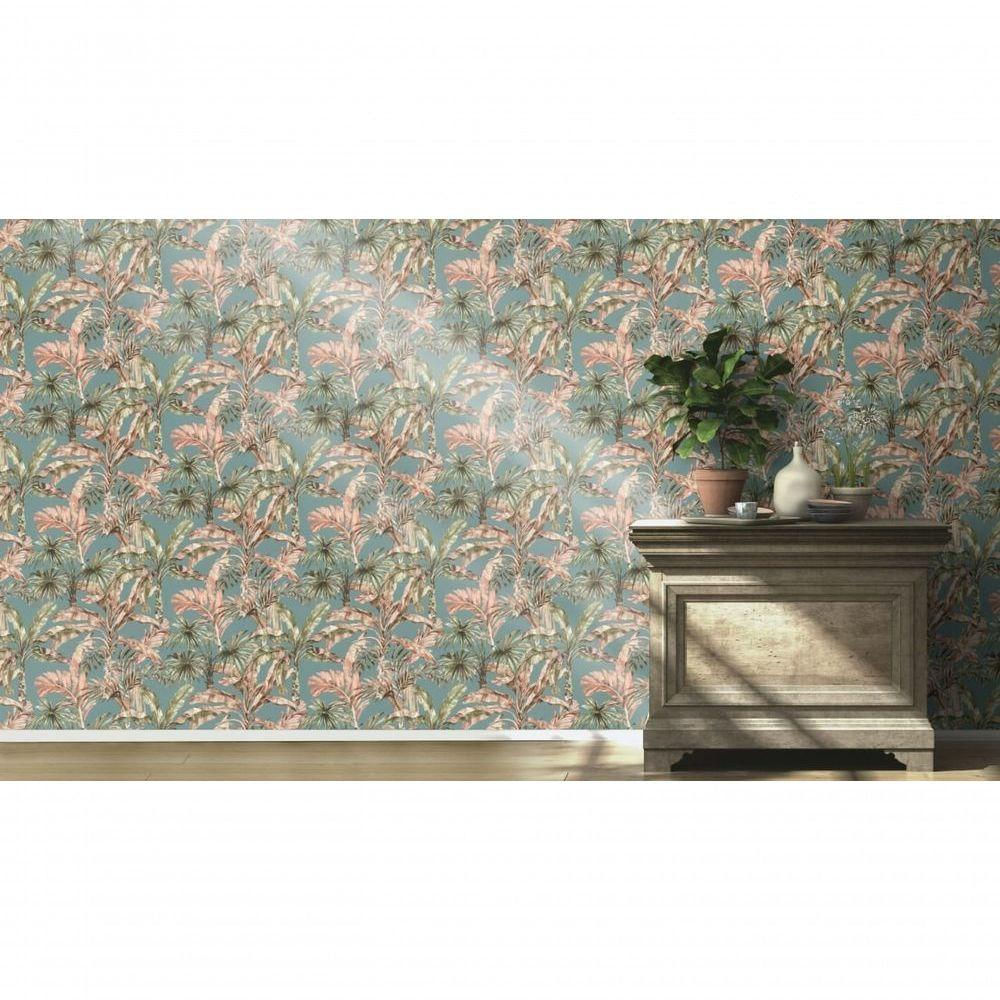 Papel De Parede Barbara Home Folhagem Azul E Rosa Claro 485257