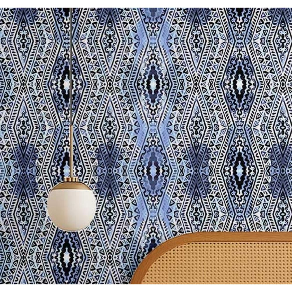 Papel de Parede Boho Autoadesivo com Estampa Tribal, Vinílico À Prova d'Água Azul, Removível para Quarto e Sala - S4sassy 63,5 cm (L) × 152,4 cm (C) / Azul - Vinil Texturizado