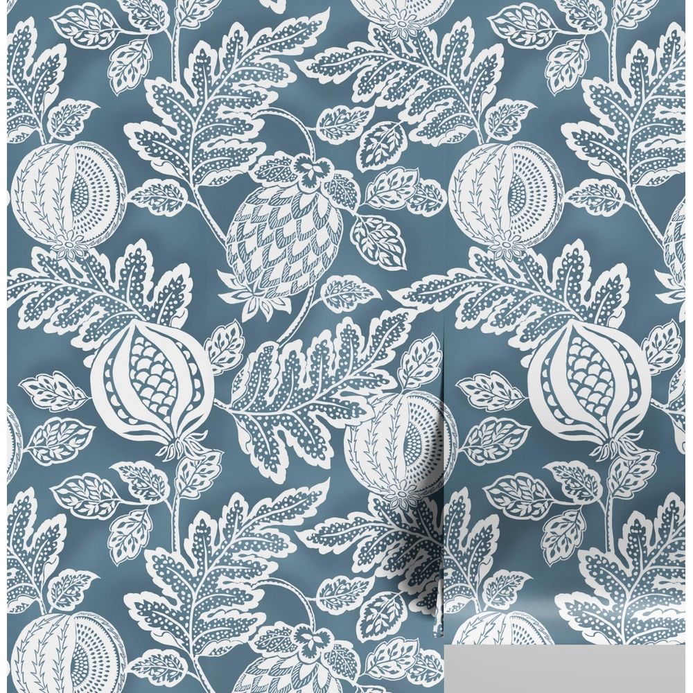 Papel de Parede Botânico de Romã Azul, Vinílico Autoadesivo, Aplicação Fácil para Quarto Estilo Fazenda, Armários, Salas - S4Sassy 63,5 cm (L) × 304,8 cm (C) / Azul - Vinil Liso