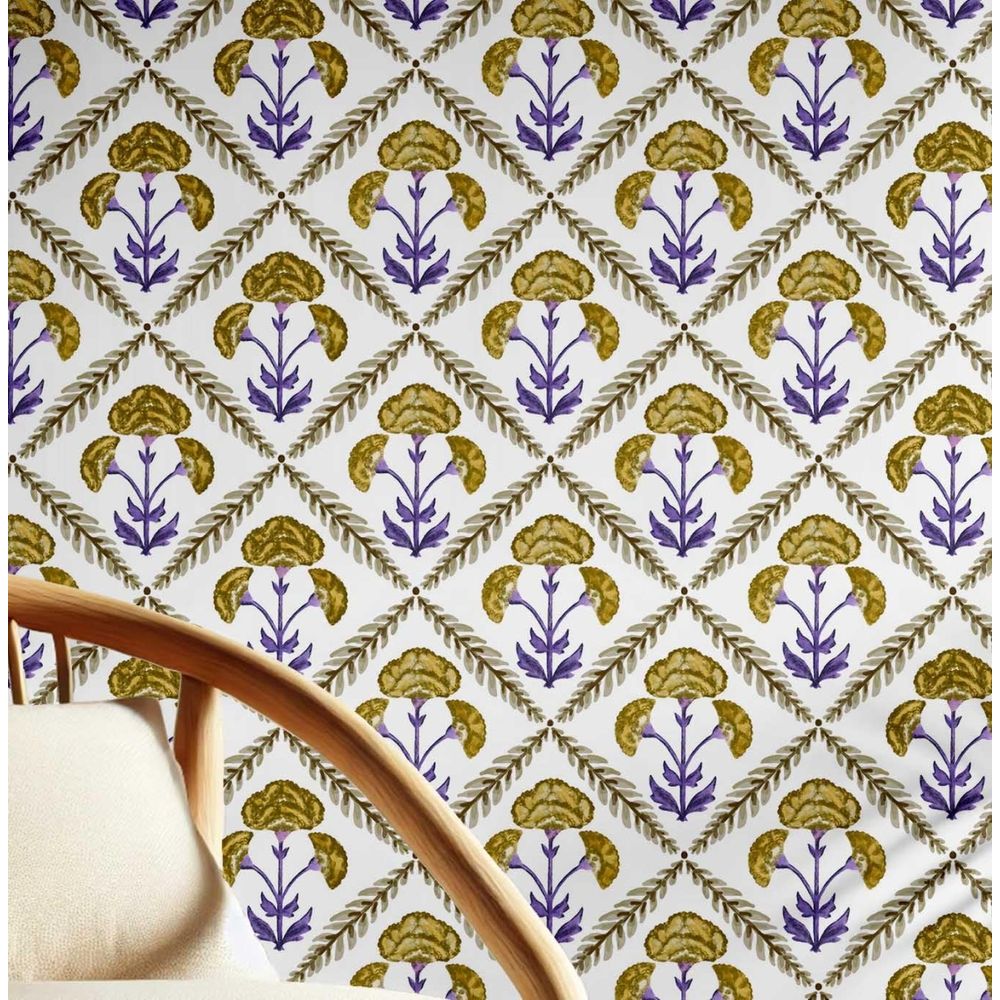 Papel de Parede Floral em Padrão Losango, Estilo Asiático, Vinil Autoadesivo, Fácil DIY para Quarto e Sala, Verde - S4Sassy 63,5 cm (L) × 152,4 cm (C) / Verde - Vinil Texturizado