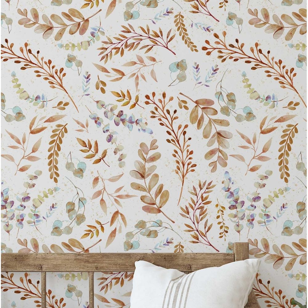 Papel de Parede Folhas Aquareladas Bege Autoadesivo em Vinil, Revestimento Botânico, Decoração DIY para Quarto, Sala e Ambientes - S4Sassy 63,5 cm (L) × 152,4 cm (C) / Bege - Vinil Texturizado