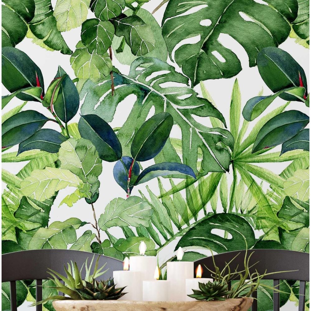 Papel de Parede Monocromático de Folhas Tropicais Verde, Vinil Autoadesivo, Revestimento Decorativo DIY para Quarto e Sala - S4Sassy 63,5 cm (L) × 152,4 cm (C) / Verde - Vinil Liso