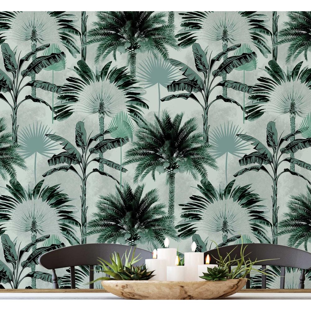 Papel de Parede Monocromático Folhas de Palmeira Verdes Vinílico Autoadesivo, Decoração DIY Fácil para Quarto e Sala - S4Sassy 63,5 cm (L) × 152,4 cm (C) / Verde - Vinil Liso