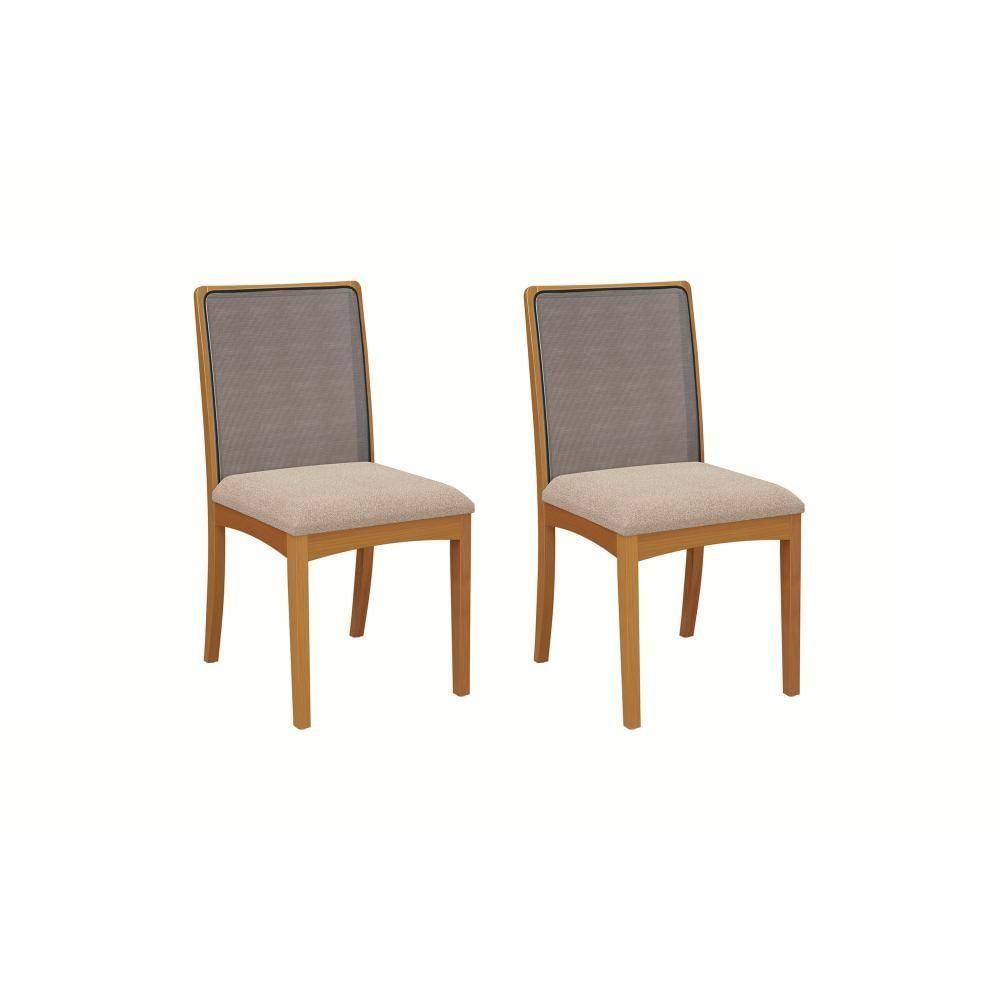 Par De Cadeiras Em Madeira Maciça Kappesberg Lara Linho Mesclado Areia E Tela Chumbo
