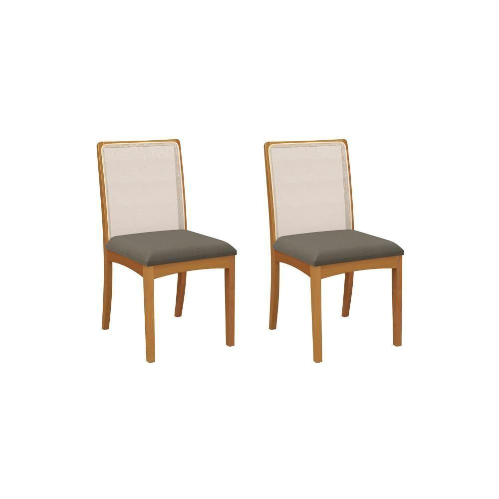 Par De Cadeiras Montadas Kappesberg Em Madeira Maciça Lara Linho Mescla Chumbo Tela Bege