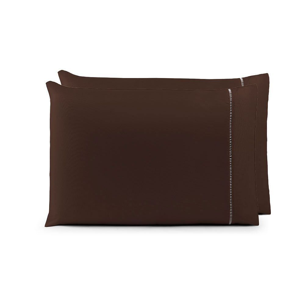 Par de Fronhas 70cm x 50cm 2 Peças Laura Toque Percal 400 Fios 100% Poliéster - Marrom
