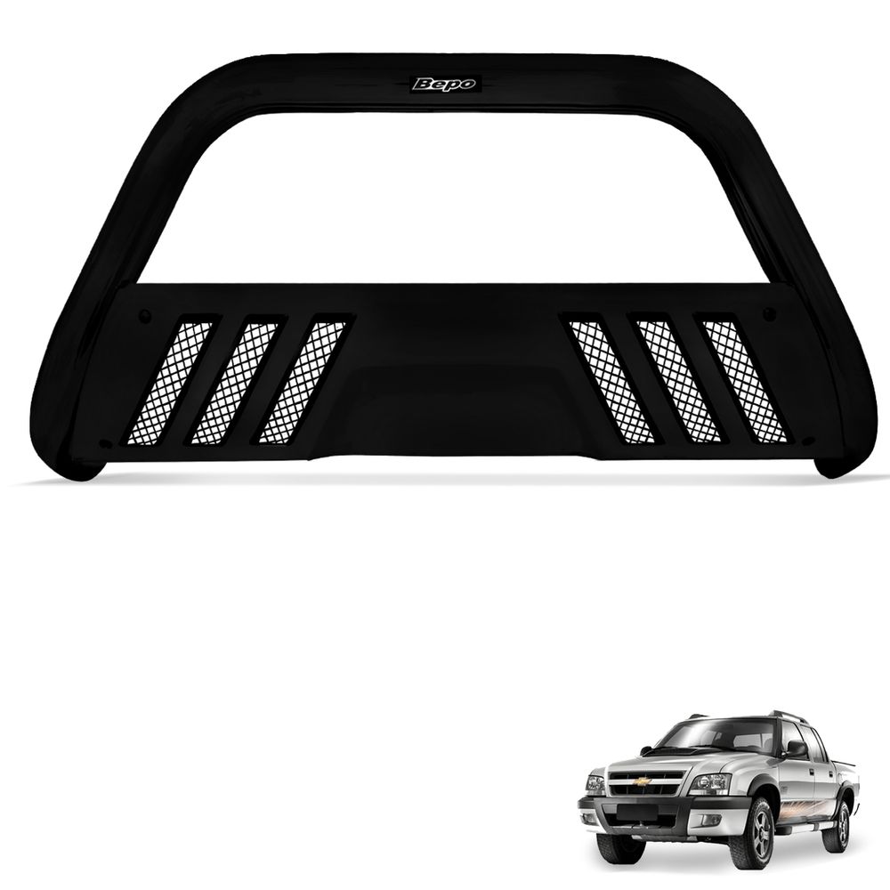 Fabricado em aço carbono, revestido em Preto, modelo com grade, é um material de alta resistência e qualidade, auxiliando na proteção da parte frontal de seu veículo.