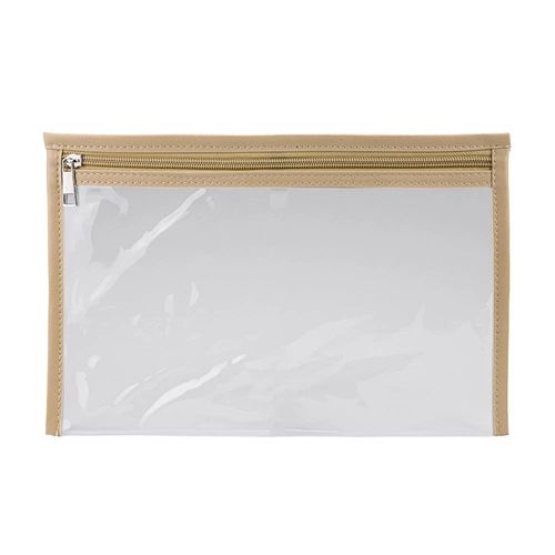 Pasta Organizadora Le Pvc Transparente com Acabamento em PU com Zíper - Bege 20x30 cm