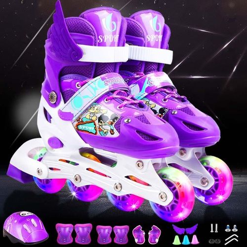 Patins Inline Ajustáveis para Crianças com Rodas Iluminadas e Fecho Duplo P / roxo