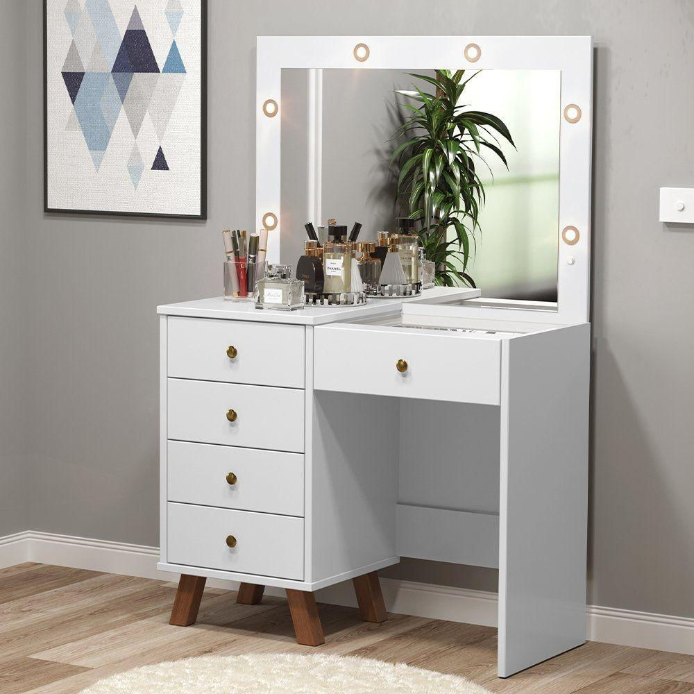 Penteadeira Camarim Com 05 Gavetas Mel Branco Patrimar