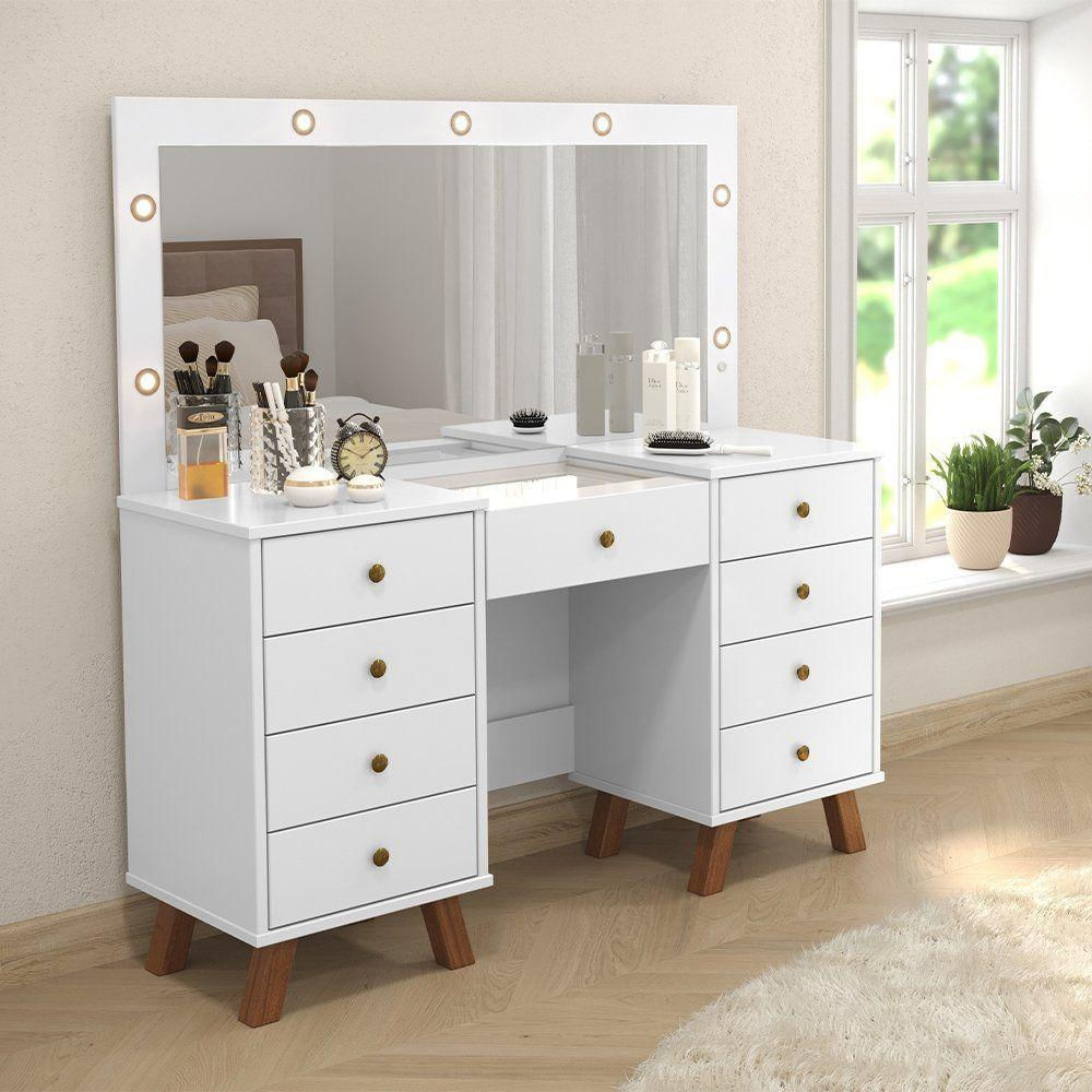 Penteadeira Camarim Com Espelho E Leds Com 9 Gavetas Branco