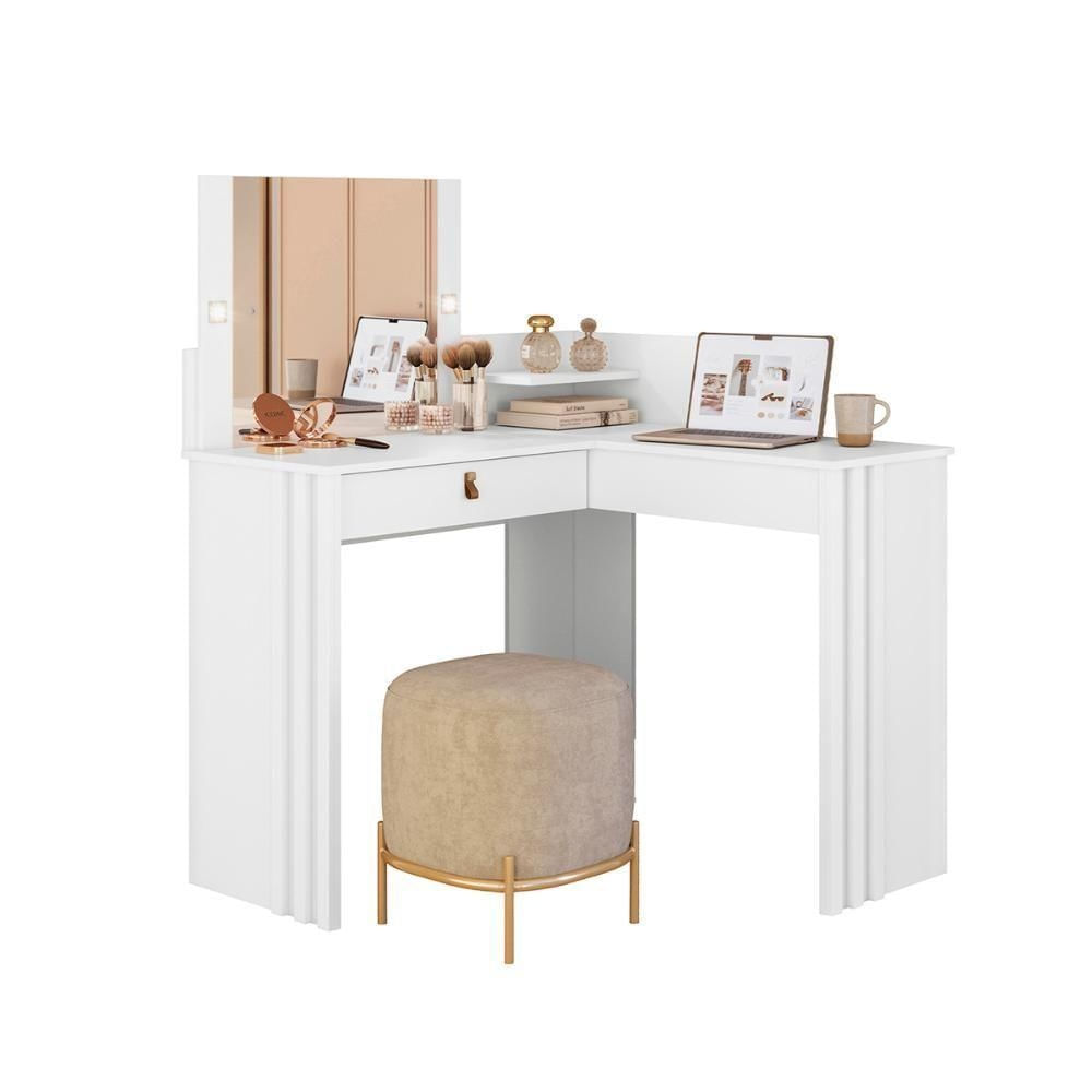 Penteadeira Camarim De Canto Glow Com 1 Gaveta Espelho E Led Branco