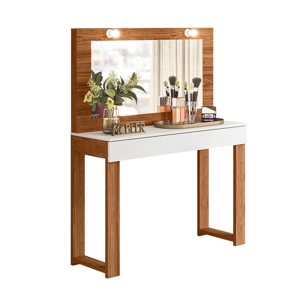 Penteadeira Camarim Gala com Espelho LED Moderna MDF Branco Mel para Quarto