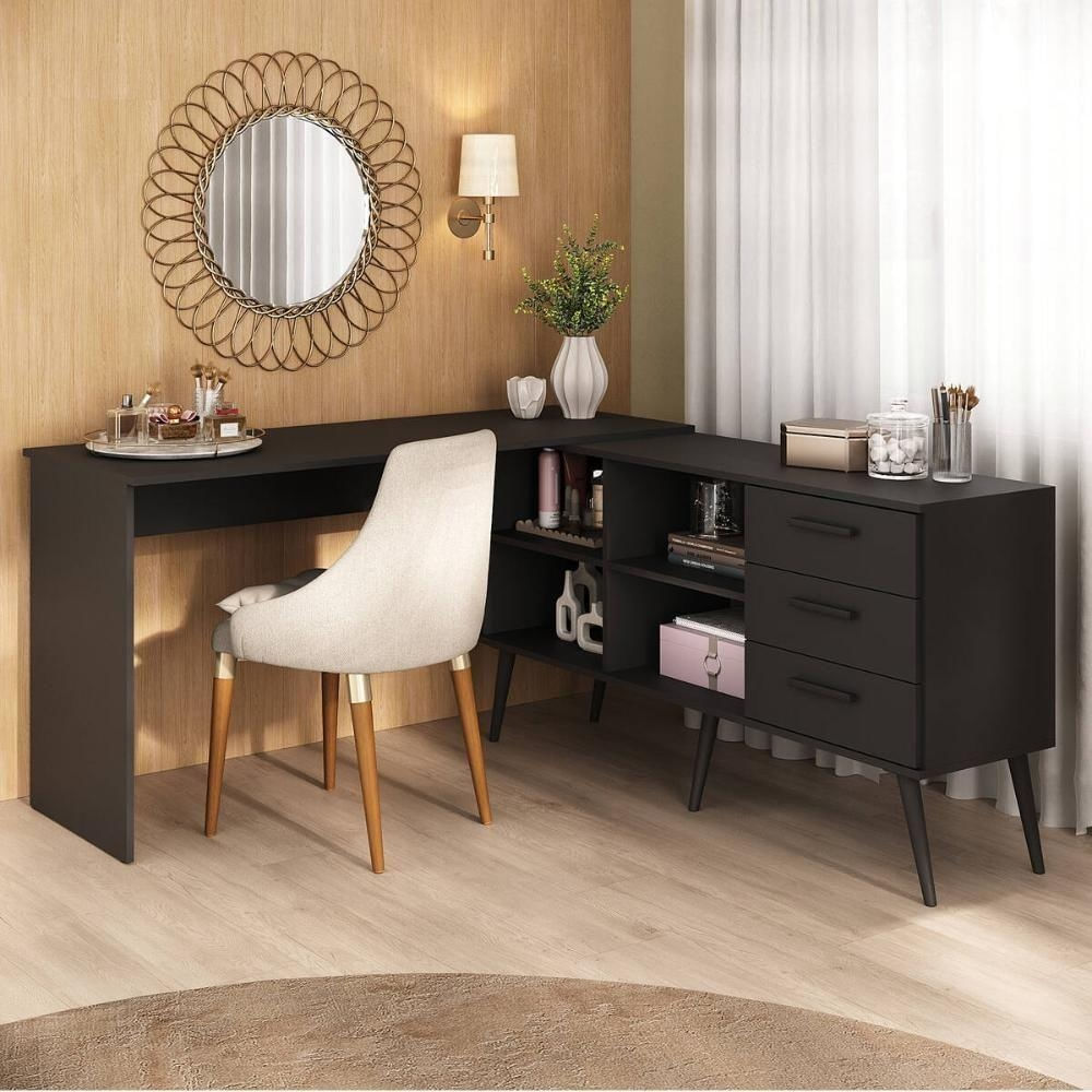 Penteadeira Escrivaninha De Canto Com 3 Gavetas Jady Multimóveis Mp4782 Preto