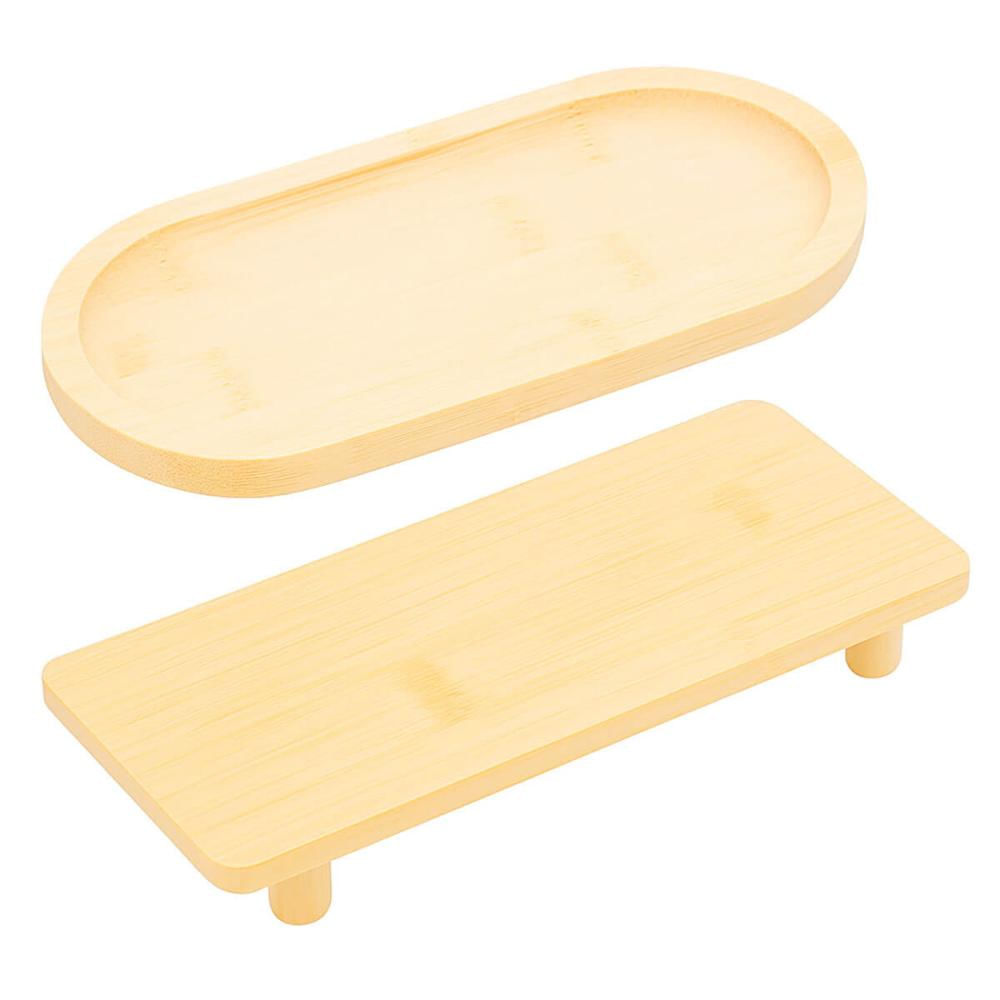 Petisqueira Oval e Bandeja Retangular com Pé Petiscos Nature Lyor Bambu 24cm.