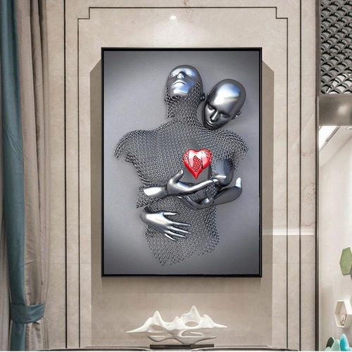 Pintura em Lona com Figuras Metálicas para Decoração de Parede 30x40 cm