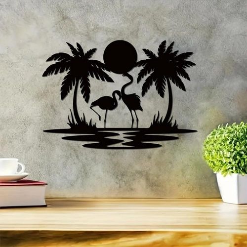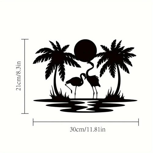 Placa de Metal Flamingo e Palmeira ao Pôr do Sol - Decoração Vibrante para Casa cinza claro