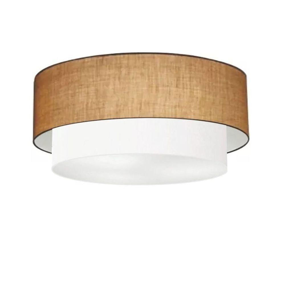 Plafon Duplo Cilíndrico Vivare Md-3064 Cúpula Em Tecido 70x60cm - Bivolt Palha-branco 127/220v