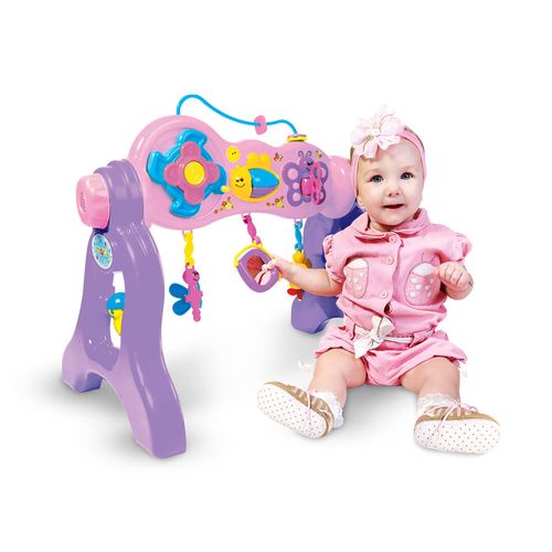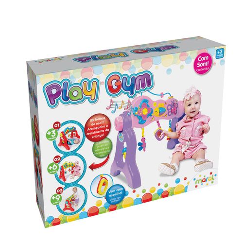 | Mais Informações | +06 meses, para o bebê brincar sentado, para tocar com as mãos e observar o brinquedo; e + 09meses, para o bebê brincar em pé ou apoiado, como uma mesinha de atividades. O centro de atividades Play Gym Maral possui espelho, para estimular o bebê a desenvolver a autodescoberta, cata-vento que gira e toca melodia ao ser apertado, rolinho colorido em formato de abelha e uma asinha de borboleta que vira para os lados. Nas laterais, tem 2 bonecos coloridos que giram. Os penduricalhos, além de divertidos, podem ser retirados para brincadeiras avulsas. ";Contém: Espelho Cata-vento Rolinho em formato de abelha Asinha de borboleta 02 bonecos coloridos nas laterais |