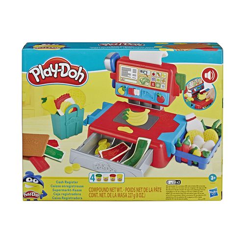 Brincar de ir as compras no supermercado pode ficar muito mais legal com o Conjunto Playdoh Caixa Registradora! As crianças podem brincar com o scanner que emite sons, carimbo de código de barra, com os cortadores de comida para criar comidinhas de mentirinhas super legais. O scanner da Caixa Registradora emite um bipe e a gaveta também faz um ruído característico quando aberta. Elas podem ser colocadas no cesto de compras e brincar de ir às compras com os amigos! Ainda há moldes de moedas e cédulas de dinheiro para colocar na gaveta. E ah, não pode esquecer de pegar o recibo!