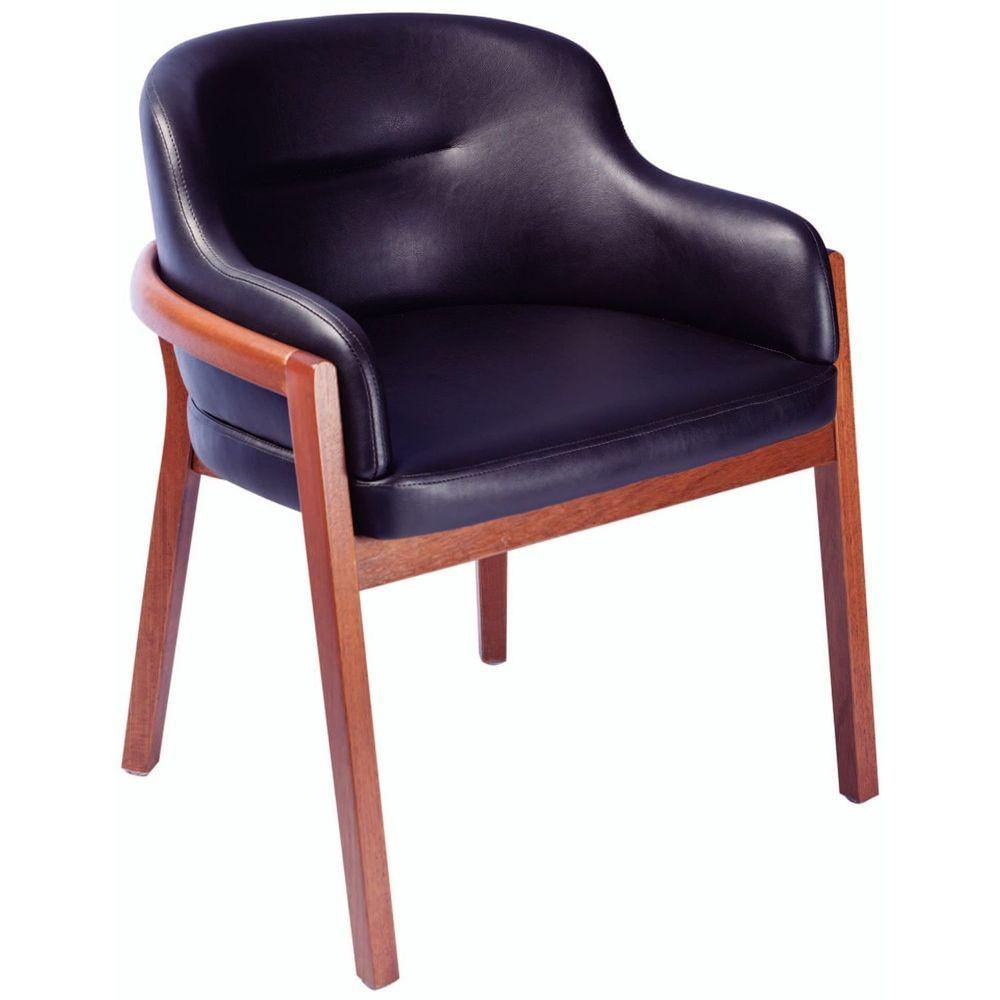 Poltrona Baixa Tramontina Porto Com Base Em Madeira Tauarí Com Acabamento Amêndoa E Estofado Preto