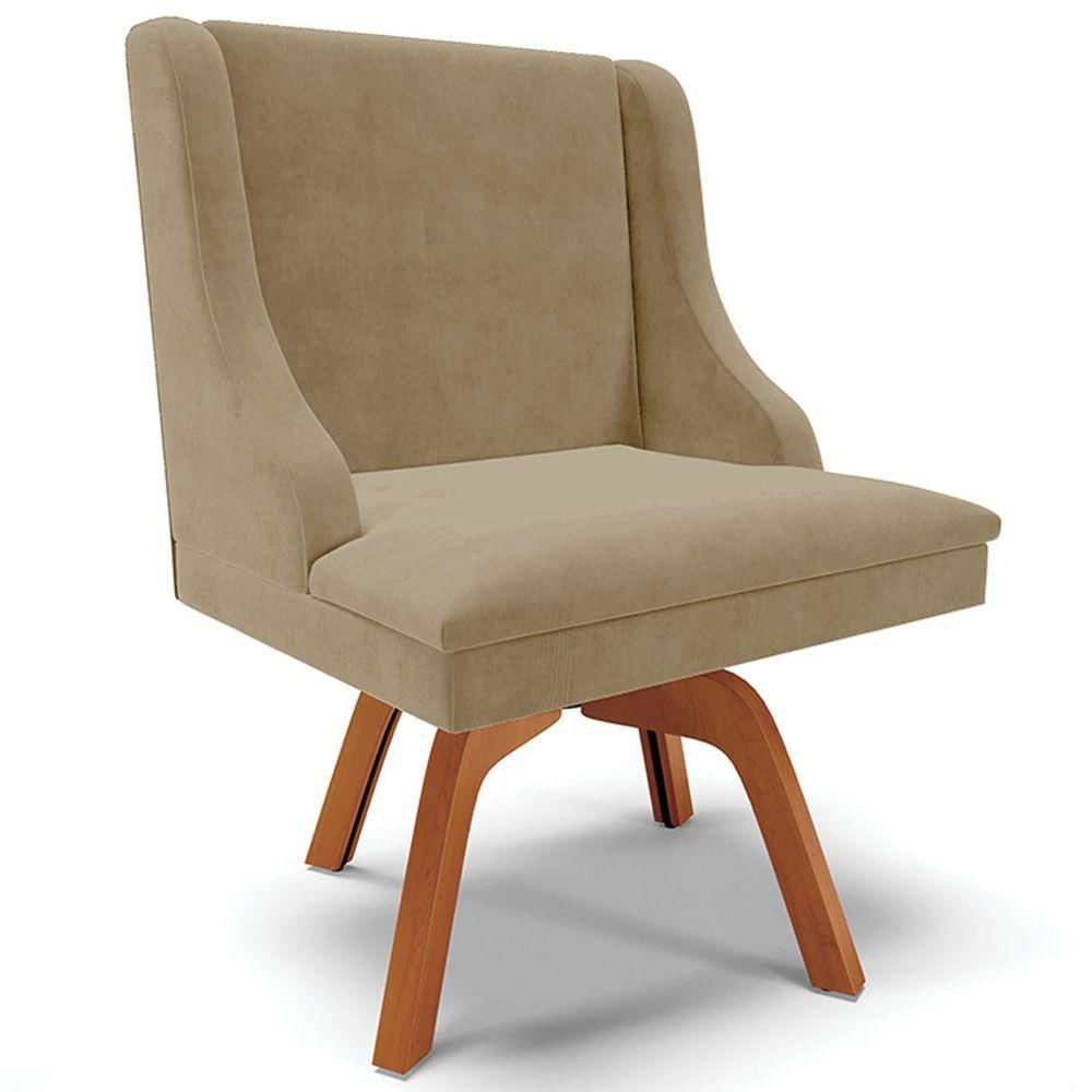 Poltrona Base Giratória De Madeira Suede Nude/Natural
