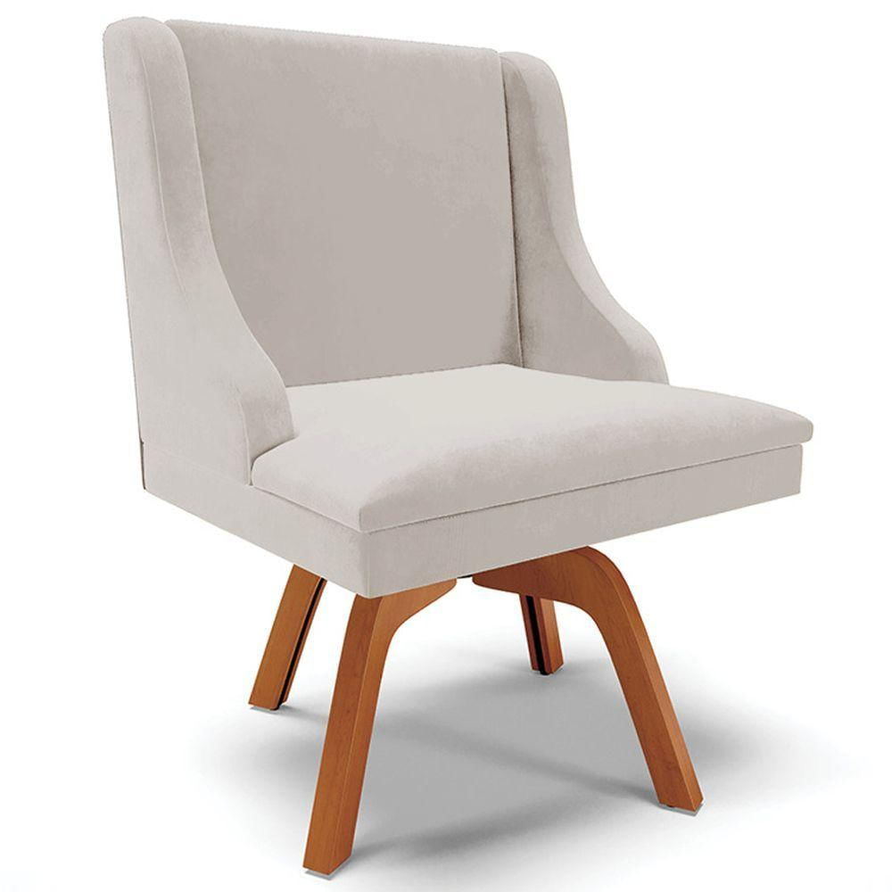 Poltrona Decorativa Base Giratória De Madeira Firenze Veludo Cinza/natural - Gran Belo