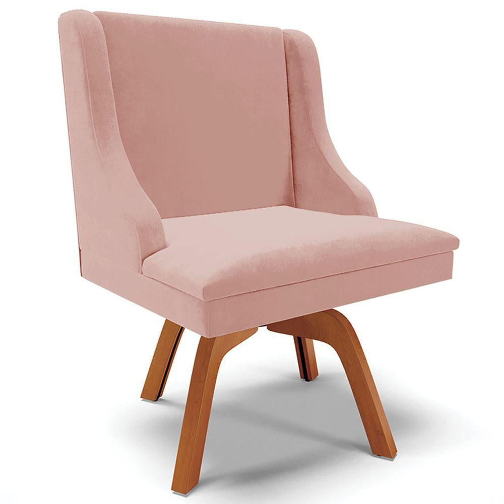 Poltrona Decorativa Base Giratória De Madeira Firenze Veludo Rosê/natural - Gran Belo