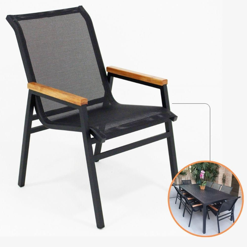 Poltrona Cadeira Com Braço Madeira Nossa Kasa Móveis área Externa Jantar Piscina Preto