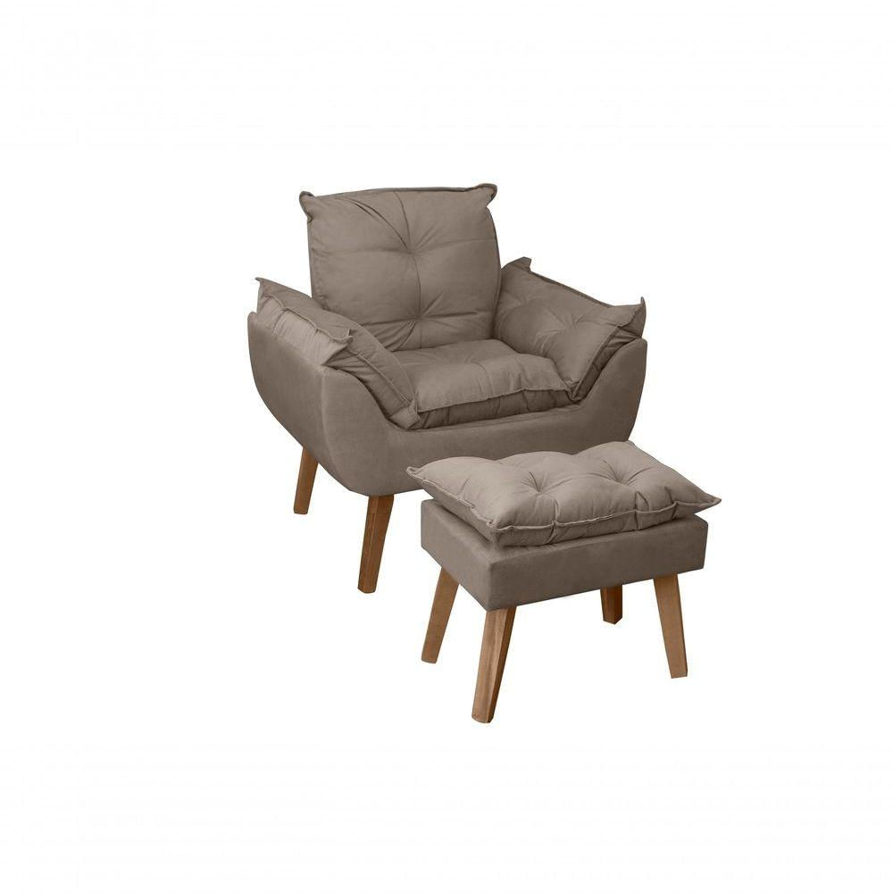 Poltrona Cadeira Decorativa E Puff Glamour Com Pés Quadrado Capuccino
