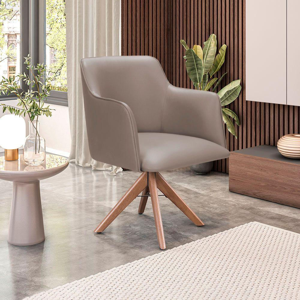Poltrona Camélia Base Giratória De Madeira Corino Cor Cáqui