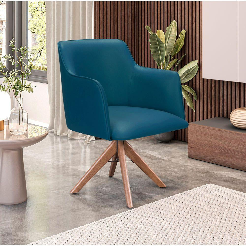 Poltrona Camélia Base Giratória De Madeira Veludo Cor Azul 2133