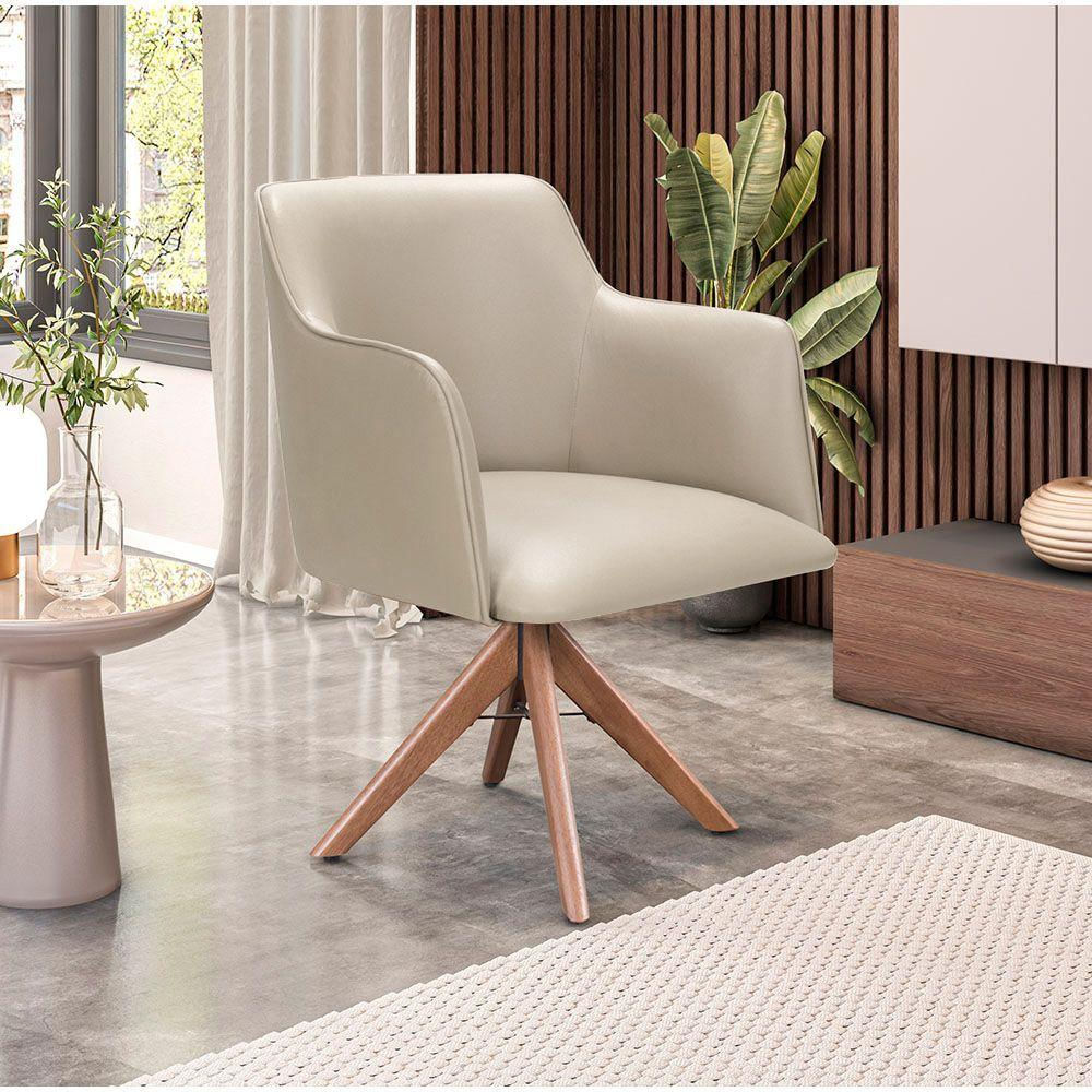 Poltrona Camélia Base Giratória De Madeira Veludo Cor Bege 2137