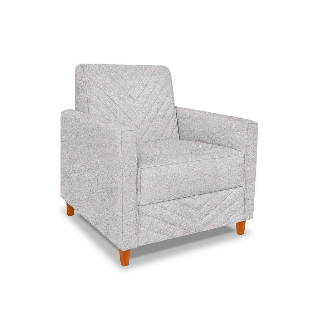 Poltrona Camila Bouclê Cinza Pés De Madeira - Pallazio