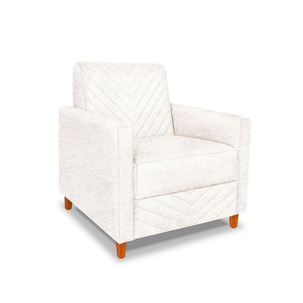 Poltrona Camila Bouclê Off White Pés De Madeira - Pallazio