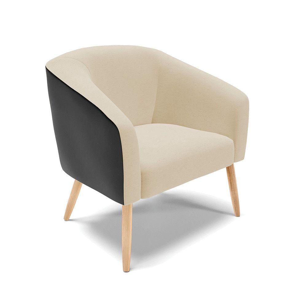 Poltrona Stella Corano Preto Com Linho Areia A27 Pés Palito Natural - D'rossi