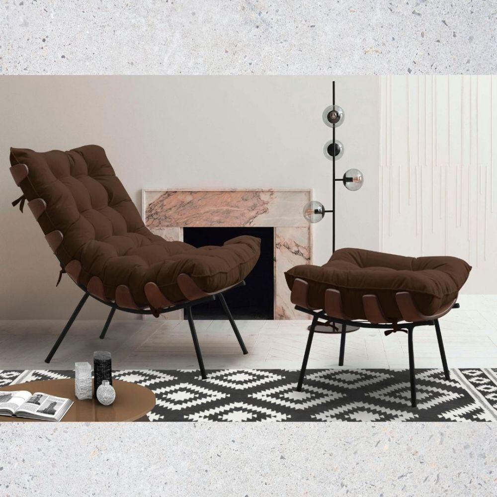 Poltrona Costela Com Puff- Tecido Marrom - Gatmagazine