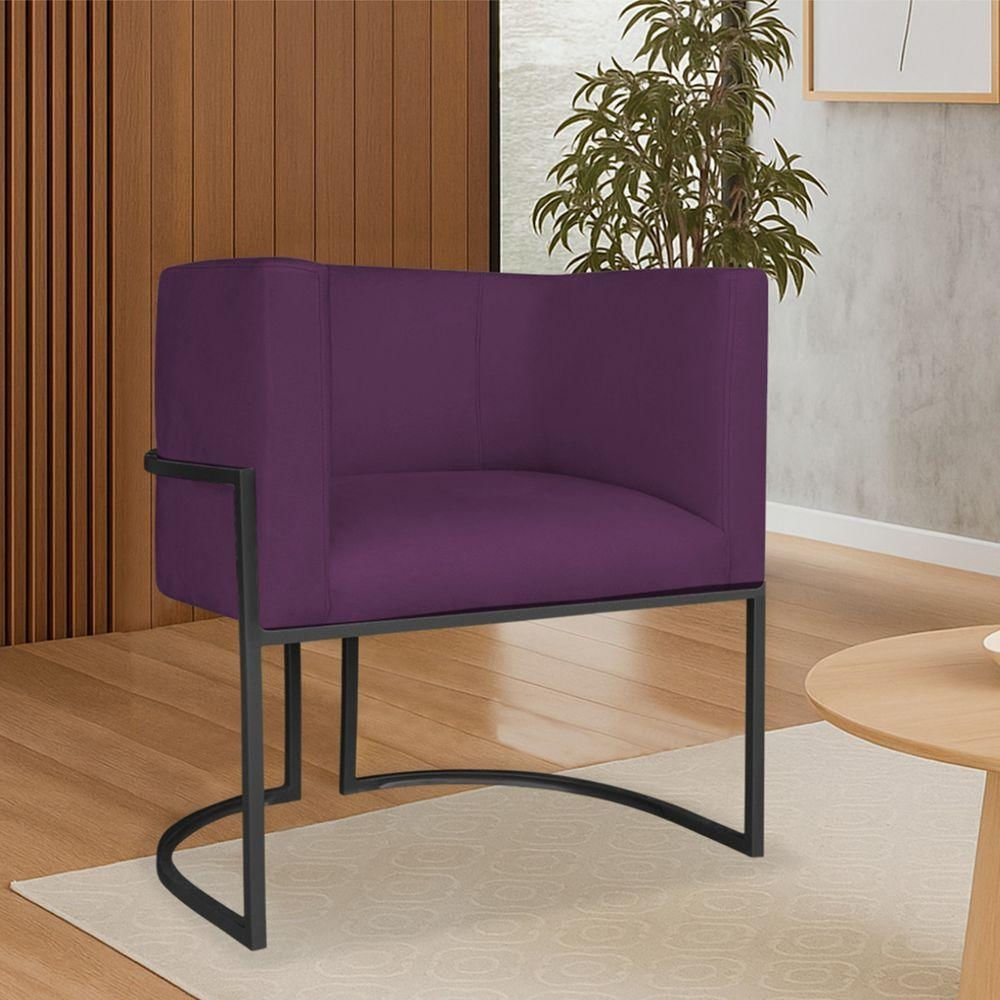 Poltrona Dália Luxo Moderna Estofada Design Sofisticado Com Base De Ferro Preto Suede Roxo